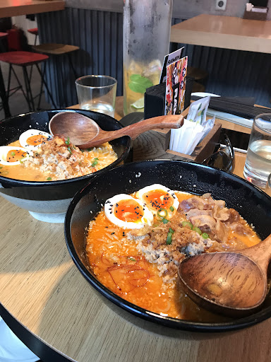 Read more6 из 10. А теперь а плюсах и минусах: внутри более или менее приятная обстановка и не совсем уютная так как иногда охота облокотится а постфактум не куда, цены Одина в один как в Японии на только в рублях, а это значит все дороже в 2 раза, для Москвы может это и не дорого. Качество еды на очень хорошо уровне, да не Япония но близко, порции рамена не маленькие и это хорошо, а вот качество показалось ниже чем хотелось бы, но выше ожидаемого, лапша оказалась из твёрдых сортов пшеницы а не яичная, да как и многие писали вечно чего то нет, пришлось есть куриный рамен , а хотел попробовать говяжий, если сравнивать с оригиналом в Токио то 6 из 10 не выше дальше, пиво Кирин подали не холодным и не в ледяном стакане, и по этому оно не такое тягучие и не так приятно пить, таже история с соком, и вообще в Японии везде подают воду каждому посетителю. Гёдза обычные магазиные точно не такое как там и соевый соус вообще отличается кардинально. Приятно что подают бумажные фартучки что бы не обрызгать одежду. Подают одноразовые палочки но не плохого качества. Имбирь подают только с орлами и отделено за деньги, такого...