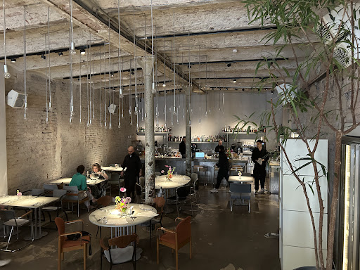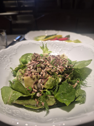 Read moreВообще это хороший ресторан и скорее всего я сюда вернусь, но тем не менее он для меня где-то в списке запасных находится. Был в субботу днем Локация хорошая - арка - дворик - красиво Интерьер прикольный - лесенкой. Меню интересное. Много фермерского, чувствуется экспериментаторский дух шефа. По вкусу, мне показалось, не ровно... Зеленый салат - свежо, хорошие ингредиенты, заправка кисло .... - сладкая. Ну не ждал я там сладости )) Карпаччо из томатов - вкусно, только не хватало соли, а официант ее не принес и на мои взгляды почему то никто не реагировал. Половину съел без соли ))) Пончики с щучей икрой и сметаной. Ожидания - что то горячее, жирное и слегка хрустящее и сверху солёная икра. Сметана все убила. Ощущение что ешь хлеб со сметаной и что то слегка солёное на языке. Прям не зашло Шницель хорош, цезарь с солёными огурцами - интересно... В свежевыжатый сок по умолчанию положили лед... такое... В целом мне точно интересно продолжить изучать меню, вечером ещё и вино-коктейли тут должны быть хороши. Сервис не порадовал. Про концепцию никто не рассказал (я первый раз тут), соль-перец не принесли, считали не быстро и ни одного вопроса про "как вам" Ни одного... Ну ок,...
