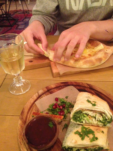 Read moreРешил провести здесь ужин с женой, с грузинским вином, мясными блюдами, хачапури, неспешными разговороми. Места немного, буквально через 15 минут все столики были заняты, но часть из них находится в центре зала и потому, мое ощущение, что именно за ними не очерь уютно. Повезло что успели занять неплохое место, но подходившие кампании вынужлены были уплотняться. Порции стандарные, взяли хачапури, хинкали, оджахури, шашлык, пироги с собой. Не скажу что супер, но цена была выше чем в других подобных заведениях, отнесу это насчет места в самом центре города, конкурентов вокруг...