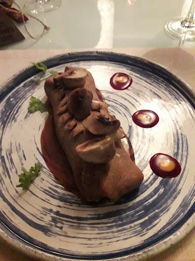 Read moreОчень необычный интерьер - аутентичный народам севера. Фотографии, чучела животных, предметы быта - все это на удивление неплохо сочетается с белоснежными скатертями, с красивой и довольно современной посудой, огромными белыми светильниками, свисающими с потолка. Единственным не аутентичным элементом была музыка - советская добрая старая из кинофильмов: Александра, Ваше благородие и т.д. К вечеру репертуар не сменился, но зато стал исполняться вживую гитаристом-солистом. Обслуживание на отлично. Официанты доброжелательны и внимательны. Нет назойливости и в то же время заказ принимали быстро, блюда приносили незаметно и деликатно, посуду забирали мгновенно и содержали столик в идеальном порядке на всем протяжении нашего пребывания. Кухня выше всяких похвал. Во-первых, креативное оформление и сервировка. Во-вторых, необычные продукты: оленина, кабан, всевозможные ягоды и даже съедобный мох. В-третьих, вкус - бесподобный. Ну и конечно не могут не подкупать моменты хорошего тона или легкой халявы - комплементы от шеф-повара (канапе с муксуном), дополнение к десерту (самодельный облепиховый мармелад) и просто вкусный ягодный морс. Место отличное и не зря имеет много наград и полную посадку. К тому же, ожидала, что ценник там намного выше, но все вполне приемлемо. P.S. А еще тут дают особенную жвачку, вернее смолу лиственницы. Она имеет специфический вкус и очень липнет к зубам. Второй раз я бы не попробовала, но во всяком случае...