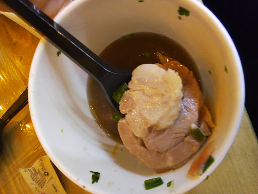 Read moreПервый раз посетили это место и очень сильно разочаровались!Во-первых подача супа в стакане....я думала,будет как в меню на картинке....пусть даже пластиковая тарелка...но нет..стакан из которого вообще не удобно кушать суп..Во-вторых из мяса свинины,был только сомнительного вида кусок...который я даже кушать не стала...5 штучек лапши и яйцо..все.Кушать нечего..не вкусно.Из всего мне понравилась булочка..В общем за 700р я осталась голодная,спасибо. Плюсом еще,через пару минут меня стало подташнивать от...