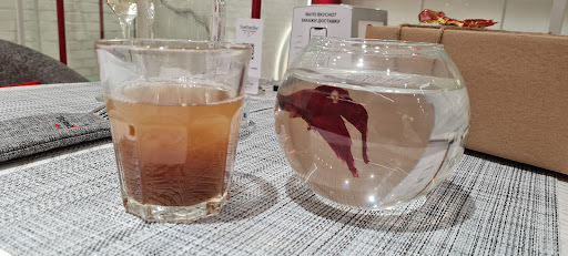 Второй момент - более критичный. Ситуация: молодой человек ел достаточно острый Том Ям и подавился, я подошла попросить воды, коротко пояснила почему. Воду принесли через пару минут, за это время стало лучше, но мне кажется когда посетителю заведения становится плохо, воду нужно принести в первую очередь. И третий момент, может придираюсь, может нет. Но в случае когда человеку становится плохо и он просит воды, он никак не ожидает что ему принесут бутылку 0,2 воды со стаканом за 170руб. Это даже бесчеловечно как-то. Ещё ок, когда человек просто во время заказа попросил ее принести - там хоть в хрустальном кувшине несите за дополнительные деньги. Лично для меня странно брать деньги за 0,2 воды. Было бы лучше зашить стоимость воды в стоимость блюд в меню и приносить ее просто так. Это отличает адекватное заведение от неадекватного(следующая стадия только брать деньги за аренду столовых приборов и салфеток).