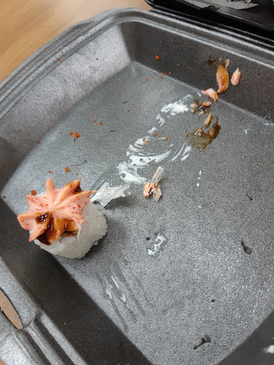 В первый раз заказали коробочки с креветками. Коробочка была вкусная, креветок 6штук. Потом решили заказать набор, выбрали вариант доставки самовывоз. Судя по коробочкам, надеялись на такие же вкусные роллы. Но как же Я ошиблась в выборе. Приехала, забрала, открыла и что Я там увидела.... Роллы разных размеров( предоставляю фото), масло с них просто стекало, в роллах была обнаружена кость (предоставляю фото) !!! Соевый соус ну просто не вкусный, очень солёный, разбавленный водой с горьким вкусом. Пришлось просто его вылить, а роллы отдала собачкам на улице. Больше Я у них наборы роллов...