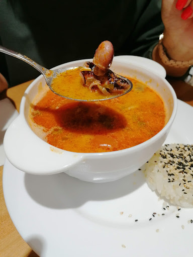 Read moreЕда , обслуживание нравится. Всегда мы с детьми покупаем ПУНТУУЗ( крахмальная лапша с говядиной , огурцы, картошка фри) . Иногда бывают слегка подгорелыми, а хочется, чтобы всегда были вкусные) Зал маловат, особенно в обеденное время- приходится стоять и ждать. Ну в целом рады, что рядом с нашим домом открылось это кафе....