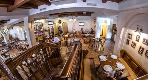 Своеобразное место. Зал уютный, оформлен в стиле европейских охотничьих домиков. Есть несколько подиумов-балкончиков, которые создают некоторое ощущение приватности, есть даже почти изолированные от зала "закуточки" на небольшую компанию. Персонал просто выше всяких похвал, от милейшей девушки в гардеробе до молодого человека, который был нашим официантом. Все очень доброжелательны и обходительны, при этом без какого-либо пафоса или, наоборот, слащавости. Я бы сказал, хороший европейский уровень. Почему же тогда только тройка? В ресторан люди идут прежде всего за вкусной едой. И хоть вызолоти стены и подай всё на серебре, если приготовлено так себе - и впечатление от ресторана будет так себе. Мне даже в какой-то момент стало обидно, что в таком симпатичном заведении так неудачно готовят. Хочется верить, что нам просто...