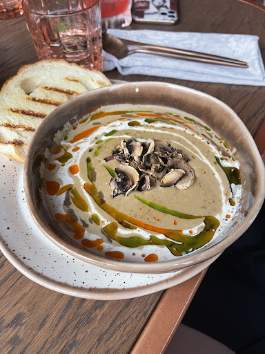 Read moreЗаехали на ужин, мест почти небыло и нас провели во внутренний зал. Внутренний зал полный отстой. Как в сарае. Не уютно. Очень шумно. Звук отражается от пустых стен и создаётся какофония. Музыка громкая, разговаривать сложно. Обслуживание хорошее. Официанты приветливые, молодцы, стараются. Меню знают. Еда нормальная, но порции салата маленькие. В греческом 4 кусочка огурца, 4 кусочка помидора, 2 оливки и кусочек сыра. Ассортимент в меню маленький, десертов всего 3 вида. Визуализации нет, зато много непонятных названий. Расшифровка из чего состоит блюдо отсутствует. Заказал говяжьи щёчки, а они идут с гарниром из картошки, и ещё какой то непонятной субстанции. В меню про картошку и субстанцию ничего нет. И мне оно не нужно. В общем, пожелание к администрации: над меню желательно поработать. Цены средние, особенно порадовала цена на чай, но при этом ассортимент чая очень маленький. Зато огромный выбор вина, которое я не пью! Туалет оформлен оригинально. Приятно удивило. В общем не знаю пойду ли я ещё туда или нет, но если соберётесь - заказывайте...