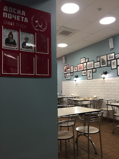 Отличная столовая. Чисто, уютно, вежливый персоонал в пилотках и красными галстуками. Чистый туалет, новая сантехника, без контактные краны. Хорошие сушилки. Обеденая зона поделена на три зала, есть телевизоры идут фильмы Советских времён. Да и сама отмасфера как бы возвращает в прошлое. В большом зале во всю стену карта СССР. Для столовой большой выбор еды, много разнообразной выпечки. Чай, кофе, компот, различные соки и напитки. Есть алкоголь. Отзыв начал писать пять дней назад, недописал. Продолжаю писать спустя пять дней. Время посещения примерно то-же 08-30. Сегодня больше людей, в основном китайцы. Очедь двигается быстро примерно 5-6 мин. Изночально ставил 5 звёзд. Сегодня снизил до 3, причина грязные и мокрые тарелки. Явно жирные с пятнами. Сделал замечание, тарнлки не убрали. В погоне за количеством не забывацте о качестве! Как нибудь зайду...