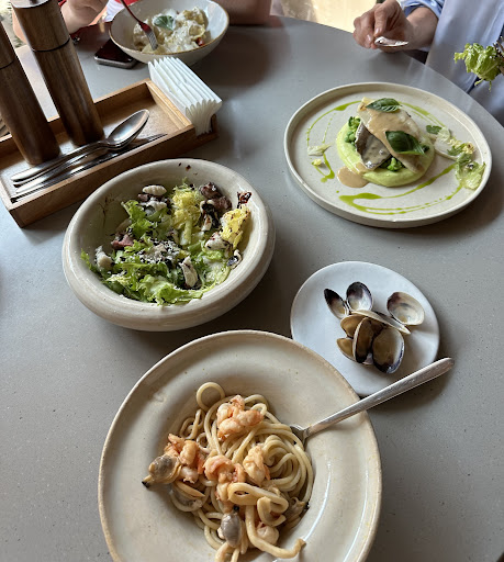 My scallops were better; however, I didn’t enjoy digging inside the hard shelves. Also, my pasta tasted the same: cold, undercooked and tastesless.