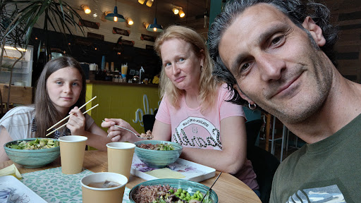 Замечательное место, про которое мало кто знает :( Только тут в городе делают поукей, и делают его - восхитительно! По идее это кафе с моноблюдом, Поукей, но его несколько видов. Все только с морепродуктами или рыбой, есть один вегитарианский вариант с вакаме и тофу, тоже вкусно. Морепродукты и рыба - сырые, с заправками и соусами, это смешивают с зеленым салатом и бурым (либо обычным) рисом, и добавляют соус на выбор. получается вкусная и здоровая еда. Помимо основного блюда есть ещё 1 вид супа и 1 вид десерта, в итоге получается небольшое меню, но всё ОЧЕНЬ хорошо сделано, вкусно и необычно. Также есть большой выбор гавайского бутылочного пива, а ещё тут очень жёсткий гавайский кофе, не испорченный кофе-машиной и неумелым бариста, потому что этот кофе сделан в капельной кофемварке. Он очень крепкий, немного необычного вкуса, и всегда одинакового качества. Многие знакомые сходив сюда раз, регулярно потом берут на вынос, либо заезжают на быстрый перекус, после заказа еду обычно отдают в течении 5 минут, так что это хорошее место если хотите поесть вкусно, быстро и по нормальной цене. За 2 поукея и 2 кофе мы отдаем чуть больше 1000, за свежие продукты это нормально. С дороги заведение увидеть нелегко, однако оно стоит того чтобы...