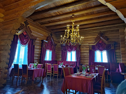 На этом всё. А вот теперь, минусы: Посредственная еда, которая никак не стоит своих денег. И я не говорю о порциях, маленьких или больших, я говорю о вкусе. Они приготовлены на уровне обычных сельских кафешек. Единственное, за что реально не жалко отдать деньги - дичь. Но и она приготовлена так себе. А особенно, меня удивили морепродукты. За такую цену, такие ужасные креветки, гребешок и кальмар ещё надо найти. Кальмар весь резиновый, гребешок с душком, а креветки безвкусные, переваренные/пережаренные и рыхлые. Я просто не понимаю, зачем вы берётесь за те блюда, которые не в состоянии готовить нормально. Просто уберите их из меню и не позорьтесь. Официанты. Вы должны понимать, что здесь, как повезёт. Есть официанты очень приветливые (в основном девушки), а есть те, кому съездили лопатой по лицу и именно с этой грустной миной человек вышел на работу. Я отлично понимаю, что все мы можем уставать и злиться, и это нормально, но когда в общении с посетителями заключается твой ОПЛАЧИВАЕМЫЙ труд, то тут будьте так добры надевать маску и хотя бы выдавливать из себя улыбку и доброжелательность. Официант, как и администратор - лицо заведения. И не достаточно, чтобы это лицо было красивым. Если бы меня обслуживала тётя Клава весом 200 кг., но с улыбкой на лице и добротой, то я бы была на 7-ом небе от счастья и захотела бы снова посетить такое место. Дети. Да, в "ресторане" они есть. Для них даже есть игровая. Только вот проблема. Нет отдельного зала для родителей и их прекрасных цветочков, которые могут позволить себе врубать мультики на телефоне на весь зал, бегать туда-сюда и громко кричать. Такое ну никак не способствует приятному времяпрепровождению. Думаю, многие взрослые люди меня поймут. Ты хочешь после работы провести время в красивой тихой обстановке, но в итоге получаешь ультразвук, который заставляет давиться пищей от неожиданности. Просто, когда в названии стоит "ресторан" ожидаешь явно не этого.