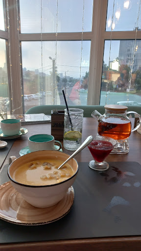 Заходим не первый раз, все нравится. Сырный суп вкусный- огромная тарелка, после него можно уже ничего не заказывать, очень сытный. Суп с морепродуктами сливочный тоже понравился. Брауни пирожное тоже огромное, делили на двоих. Вообще, порции большие. Латте и капичино очень вкусные. Хорошее отношение к гостям, доброжелательные официанты, ребята молодцы, и порадовало, что дают бесплатно воду с лимоном, льдом и мятой и комплимент от заведения клубнику в сиропе к...