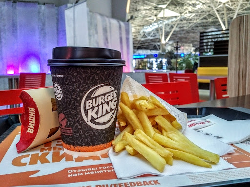 Read moreЧисто, аккуратно, компактно. Ассортимент как во всей сети. Вкусно 😋 Есть столики, отделённые ширмочками. Розетки есть не везде, и не все исправны. Есть у нас такая традиция — накручивать цены в кафе ⛾ аэропорта 🛫 раз так в 🔟. И вот в этом плане «Burger King» меня удивил. Цены выше, чем в городе 🏙 не более, чем в полтора раза. А на некоторые позиции меню и вовсе почти такие же. Мобильное приложение📱, оказавшись в аэропорту 🛫 , сильно задумалось 🤔, потом показало, что в этом кафе действуют не все акции, которые есть в городе. Но нам 👫 повезло — сработали скидки на кофе ☕, гамбургеры 🍔 и два замечательных мороженых «Сандей Сникерс»🍧 по цене одного. На двоих 👫 получилось дешевле, чем в городе без скидок. Так что ставьте мобильное приложение📱, и будет вам счастье. А если ведёте в нём мой промокод RCKLC5 — ещё и вкусный подарок...