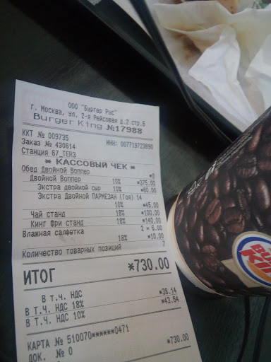 Read moreКороче, летел из вражеской Европы в НСК через Внуково, зашёл поесть в данное заведение. На каждой кассе висит карточка "Если вам не выдали чек - заказ за наш счёт" или что-то типа того, как вы понимаете чек мне никто не дал) На что я обратил внимание парня что принимал заказ, буквально сразу отношение стало хамским, а тон жёстким, ответ был "в кассовом аппарате бумага кончилась". Я не нищеброд, но деньги тоже считаю, тем более когда в аэропорту цены ого-го. Позвал менеджера, пришла какая-то халдень из кухни в белом, начала меня заверять про бумагу в аппарате, на что я верно заметил что это меня особо волновать не должно. "Приятным" плюсом было то, что я выронил стакан с колой, даже в Европе если ты по случайности роняешь стакан то тебе дают бесплатно новый. А...