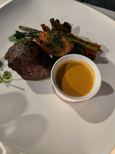 Из плюсов: Интересная подача, вкусная телятина, во рту таяла ( хотя , муж стейк заказывал, но ему просто кусок мяса принесли, не суть) Цены приемлимые.