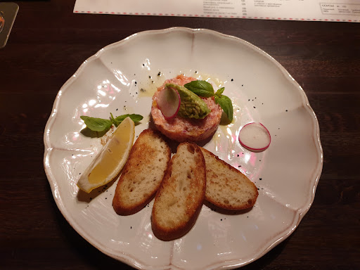 Read moreВпервые побывав в данном заведении получил двоякое впечатление. Место дислокации и внешний вид не намекал на ресторан. Зайдя внутрь был приятно удивлён интерьером и музыкой, но на входе никто не встречал,хотя было пусто(вечер воскресения). Меню и карта бара хорошие,но как часто бывает реализация пострадала. Горячее удалось заказать с третьей попытки. Молодцы,что предложили комплимент за сложившуюся ситуацию, но и тут с реализацией была проблемка(предложили пиво,которое я пил,но принесли некий комплиментарный объём(0,2 или 0,3). В итоге убрали из счета бокал пива(после намека,но по собственной инициативе),чем безусловно порадовали. Еда была вкусной и это большой плюс. Ставлю высокий бал за кухню и способность к развитию, но в реальности до 5 баллов не хватает. По моим меркам 4,7, что соответствует средней оценке. В любом случае молодцы и спасибо! Полагаю что это заведение лучшее в городе или одно из лучших. Рекомендую...