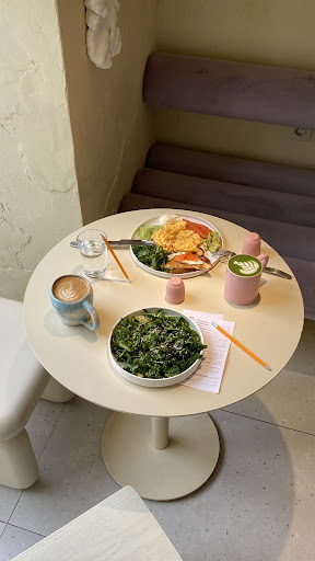 Потрясающе вкусная еда — обязательно попробуйте боул с халуми и авокадо, кстати, туда можно добавить лосось! Пробовали уже не первое блюдо — восторг! А чего стоит напиток фиалка с живыми цветами?
