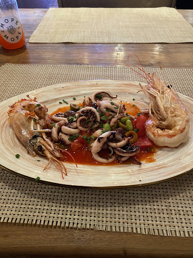 Read moreСтояли на входе наверно минут 6, никто не подошёл. Обычно принято встречать и подсказывать куда можно присесть. Потом обратили на нас внимание. Мы сели, 5 минут ждали меню, потом подошла официантка принимать заказ... без меню... класс. Но меня не столь волнует обслуживание, как качество еды. В итоге более отвратительной еды я не ела, только в столовых Сочи. Кальмары с облепиховым соусом я выплюнула. Салат с креветкой и авакадо... дикий ужас, зачем разминать авакадо в салате... это же не бутерброд... креветки в нем были будто сырые. Свежевыжатый сок в бутылке , вы серьезно ? Который уже стоит целый день, а возможно и вчерашний. НО ОН БЫЛ ВКУСНЫЙ, В ПРИНЦИПЕ ТОЛЬКО ОН И БЫЛ ВКУСНЫЙ. Лосось на гриле в ароматном масле и специях ... я вообще не почувствовала специй и масла. Картофель фри был ничего и муж сказал, что креветки в сливочном соусе тоже более менее, но во второй раз он бы такое не заказ. ПОДВЕДУ ИТОГИ: КАЧЕСТВО ЕДЫ ОСТАВЛЯЕТ ЖЕЛАТЬ ЛУЧШЕГО. Я никогда в жизни сюда больше не приду и вам не советую. Цены маленькие и блюда...