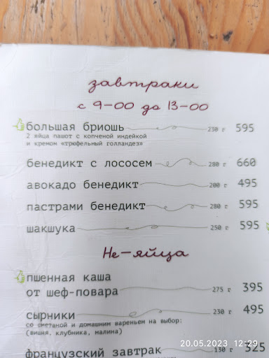 Пришли на завтрак, заказали из меню, официант все подтвердила и ушла. Подойдя через минуту, сказала, что в бенедикте с лососем, котором заказали, не будет авокадо, так как его нет (?? на завтраке то..?? основной ингредиент, который едят на каждом из завтраков практически) Спрашиваю, на что можно заменить авокадо в этом блюде, официантка сказала «ну ничего такого нет, просто будет без него». То есть по стоимости будет точно так же как с авокадо, а есть вы будете без него. Что, простите? Спрашиваю: на что можно тогда заменить в целом блюдо, на что-то похожее, на что мне был ответ: ну кашу, попробуйте. Как бенедикт с лососем может быть хоть как-то похож на кашу??? Подруга хотела заказать кашу только на альтернативном молоке, ей отказали; сказав, что каша делается ТОЛЬКО на коровьем +альтернативном, другие варианты совершенно не предусмотрены. Люди с аллергиями идут далеко и надолго. В итоге мы решили просто уйти, заплатив за кофе. В итоге мы стояли на оплату кофе минут 7, пока нас удосужились рассчитать. Так как ни менеджер, ни официант к нам за стол так и не подошли. Рассказав вообще проблему другой девушке, работнице, не знаю кто она была, она просто промолчала....