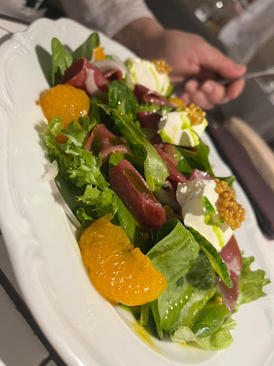 Еда салат с тунцом. Сам тунец хорош, ещё в составе перепелиное яйцо, бобы и томаты черри тёплые и без кожурки, печёный картофель, не понравилась заправка салата- жирная с горчинкой, ещё было добавлено несколько капель сладкого соуса, не поняла его необходимость, в общем соус все испортил. Стоимость 680 руб. Резюмирую- мне не понравилось.
