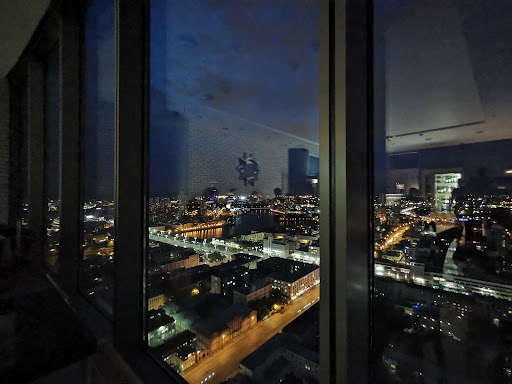 Read moreДолгая подача блюд. Вкусный Грибной крем-суп, и даже из настоящих белых грибов. Вполне уместная темнота, чтобы хорошо было видно ночной город. Правда совсем не видно, что ты ешь😅 и все же, та малая подсветка декора, винного шкафа, бара все равно отражается в окнах😔 Но вид на город потрясный! Можно даже не подниматься на смотровую площадку (оттуда вид почти такой же), а придти сюда попить чай и покайфовать от панорамы, сидя в уютном кресле😌. Лучше заранее заказать столик, чтобы место вам досталось именно у окна. Даже в будний день все столики были заняты. Порадовали цены. Дёшево для ресторана на 37 этаже). Очень непродумана зона гардероба - просто поставили штангу прям в зале на всеобщем обозрении, и даже диванчика нет, на который можно было бы положить вещи пока одеваешься. И оказалось проблематично добраться до 37 этажа. Сначала пошли на лифт, который поднимается до смотровой площадки, но как оказалось на 37 он не останавливается. Так что покатались, пока нашли нужный лифт и смогли...