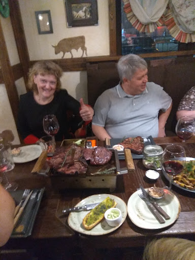 Хорошее место для отдыха с компанией или просто в двоем. Кухня готовит великолепно, меню небольшое, поэтому попробовали почти всё. Баранина, рыба, криветки - всё вкусно, но фирменное их блюдо это стейк из говядины. Посетив это заведение и не купить стейк из говядины, значит не надо было туда ехать. Есть детская комната, бар, два зала верхний и нижний. Посетителей много, но высокие перегородки отделяют твою компанию от других. Столик лучше заказывать заранее. Теперь о минусах: в карте вин, только одно полусладкое, все остальные сухие и пару сортов полусухих. Мы выпили всё полусладкое, которое было в этот день и нам не хватило. Надо расширять карту вин. При заказе столика оговаривалось, что будет живая музыка, но почему-то именно в этот день музыкант заболел. Надо на такой случай иметь замену. Официанты очень расторопные, подстраиваются под любую ситуацию. Мы закончили вечер весело и ушли довольные, от администрации даже получили презент в виде бутылки вина. Рекомендую посетить заведение и всё...
