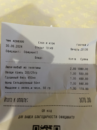 Read moreБыли в ресторане с ребенком, передо мной лежало два меню, суп ребенку заказала из основного, драники из постного. Официант переспросил о заказе, я подтвердила что суп из основного меню. Дальше продолжила заказ, хинкали и чебурек, официант снова меня не услышал и я уточнила состав заказа. Попросила принести все вместе, чтобы мы кушали одновременно. Принесли ребенку, мы сидели ждали свои блюда. У ребенка суп и драники, я была удивлена что с драниками салат и рыба, в описании этого не было. Подумала что просто не описан полностью состав. Когда принесли чебуреки, на одном из них был волос, попросила заменить, в этом мне не отказали, пришлось немного подождать и мне его заменили. На вкус одно масло, не доела. При оплате счета поняла что он больше чем я рассчитывала, проверив меню оказалось что нам принесли не те драники. Ждала пока подойдет официант и объяснит, но к нам так никто...