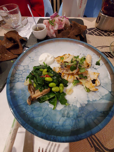 Read moreРеальный отзыв! Еда: Ешьте дома, перед посещением! чек на двоих вышел 4500, и ушли голодными и вкусового удовлетворения не было. Кальмар командорский был горько- подгорелым, тартар с тунца за счет добавок более менее на вкус, рулетики из семги, безвкусны, очущение что с заморожено-перемороженой семги, и внутри капустно-крабово-палочковая начинка. Гребешки с картофельным пюре, куда не шло. Порции маленькие! Посадка ресторана составляла не более 50%, но горячее пришлось подождать! Вино, цена перезаряжена! Интерьер: уютная, хорошая задумка, НО! Второй этаж, пыль по всюду, люстры не моются не протираются с паутинами, плинтуса тоже (организаторы, поднимитесь на второй этаж к столику у бортика и взгляните вниз на первый, думаю увидите, можно картошку сажать прям там). На столах, с таким ценником, стоят дешевые китайско-пластмассовые перечницы, разнобойные столовые приборы. Отсутствие скатертей второго этажа,создает вид столовки! Ну, ладно, возможно, в современных реалиях локдаунов и убитого бизнеса, не стоит ждать скатертей и изысканной сервировки, но чистоту то можно обеспечить! Персонал: ну очень доброжелательный, вежливый мужчина в гардеробной, думаю, для многих посетителей он является источником положительных эмоций. Официант был ненавязчив, быстр, выполнял просьбы, в...