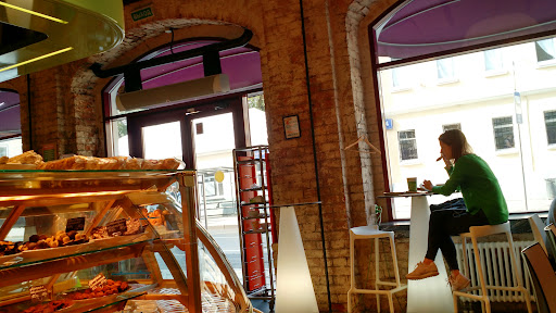 Read moreПолучили порцию негативных эмоций. Номерки, суть присутствия которых не разъяснена. Честно, ожидал от них большего, что они хоть какой-то приоритет дадут. Ан нет. Суета, столики ютятся вдоль стены, как будто их впихнули постольку-поскольку, неочевидная организация очереди, принуждённая обстановка. В общем, пространство для посетителей организовано ужасно, чувствуешь себя некомфортно. Чей-то ребенок на кассе залез в наш чизкейк. Благо, после того, как я на это обратил внимание кассира, нам его без вопросов заменили. Цены на выпечку собраны в прайс, из-за этого непонятно, что по чём. Свободных столиков, если ты с подносом, найти невозможно, так как ушлые люди заранее, отвлекая сидящих, занимают за ними столики. А с подносом сниженная мобильность не позволяет быстро реагировать на освобождающиеся. Можно, конечно, как дурак, слоняться с подносом туда обратно минут десять-пятнадцать. А ты, лузер, ешь за стойкой с высокими стульями. Накину звезду за кухню, к ней...