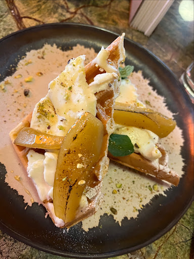 Try food: salad with quinoa, pumpkin & avocado waffles with cream and pear shakshuka with goat cheese and olives chicken pate with berries cauliflower steak with mango sauce
