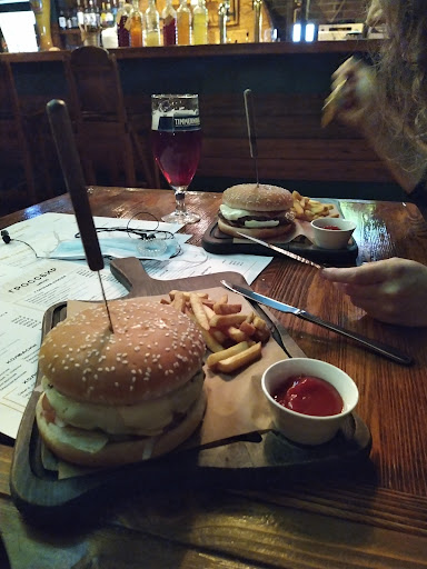Read moreСпонтанно решили сходить вечером в субботу в паб,везде была полная посадка,но не здесь,что в целом объяснимо . Официант не знал об акциях,которые висели над баром, возможно он работал первый день. Пиво было обычное для подобных заведений,без претензий. Заказали по острому бургеру с телятиной , ценой почти 500-600 р за штуку. В подобных заведениях за такую цену обычно это бургер на гриле ,либо просто хороший сытный горячий бургер с небольшим количеством салата и картошкой фри . Ну за такие деньги это должно быть так! Бургер нам принесли за 4-5 минут,что уже было странным . Первое что смутило,булки были не поджаренные, будто только что купленные в супермаркете возле дома . Дешёвый невкусный еле расплавленный сыр, еде теплый бургер . Картошка фри дубовая,будто ее пережарили несколько раз, некоторые ломтики были мечтами зажаренные до угольков. Только тот факт ,что мы были дико голодные и не смогли найти другое место , заставило на что съесть . Настроение было испорчено ,дорого, невкусно, просто неуважительно. Официант для приличия спросил как нам блюда , мы спокойно рассказали наше мнение , в итоге смотрели как он пересказывает это администратору ,и все угарают . Не обстановка и дизайн зала, ни кухня не представляют из себя никакого интереса. Мы лучше бы пошли в Макдональдс, так бургеры на 20 уровней выше ,чем тут, за другие деньги. Полное разочарование, но зато понятно, почему в субботу вечером там пусто. Я вообще никому не советую...