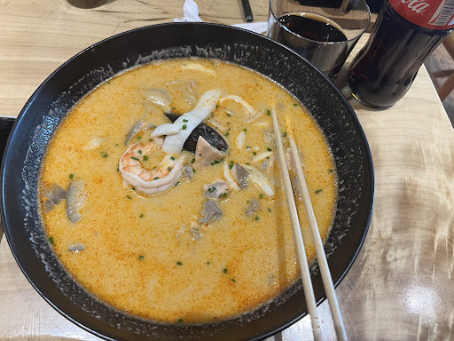 A hidden treasure in the city. Very authentic Japanese Restaurant. I ordered a spicy seafood ramen, a seaweed, a matcha mousse and a Coke. The soup base of the seafood ramen is good and authentic, and there is a lot of seafood, but I don't know why the ramen is very broken, and the ramen is served in a deep plate instead of a bowl. Seaweed is pretty good. Matcha mousse is two layers of mousse sandwiched between a layer of sponge cake. The taste is very typical of Japanese matcha, which is sweet and delicious. Generally speaking, although this Japanese restaurant is also opened by Russians, it is quite authentic...
