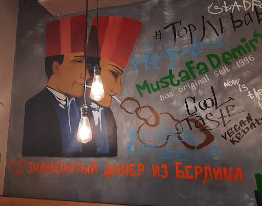 Read moreЗаведение достаточно удобно расположено. Зал просторный,достаточно много посадочных мест. Есть как отдельные столики, так и общий. Интерьер красиво оформлен турецкими мотивами с отсылкой к Германии. История на стенах гласит, что Мустафа перебрался из Стамбула в Берлин, а затем и в Москву,поэтому много надписей на немецком. Готовят классическую шаурму из различных видов мяса, есть шаурма в пите, на тарелке, а так же представлены блюда на мангале. Я пробовал шаурму из курицы в лаваше и в пите. Мне показалось, что многовато капусты, но это на любителя. Сама по себе пита очень вкусная, корочка хрустящая. Блюдо мне понравилось. Пробовал аналогичную еду в Берлине (к которому и идёт отсылка в заведении) там капусты было точно меньше, а мяса больше. К минусам отнесу плохую вентиляцию в туалете, вход в который расположен в непосредственной близости от посадочных мест. Находясь в этом районе, зайти перекусить можно - это хорошая альтернатива сетевому фастфуду, специально, наверное, не поеду, но по антуражу и концепции заведение...