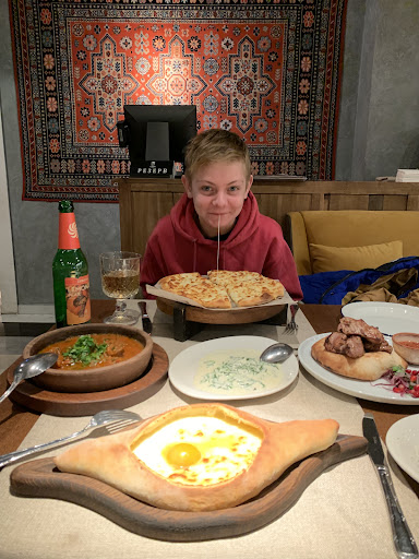Read moreЧестно скажу, у меня после посещения ресторана получились смешанные чувства: Подробнее. На входе "встречает" совсем не дружелюбный персонал. Нет, персонал не грубил, но ощущается какое-то равнодушие к посетителям (по крайней мере ко мне;)). Обстановка хорошая, приятная. За стол меня посадили быстро и так же быстро приняли заказ. Официант был приятным молодым человеком. Я несколько торопился и спросил сколько по времени будет готовится мой заказ, в ответ мне было сказано определенное время (уже не помню точно сколько, но не в этом суть...). Заказ мне принесли гораздо быстрее оговоренного времени - это плюс. Заказал я Чашушули и Хачапури по-Аджарски. Чашушули было вкусным: в меру специй, нежное мясо, вкусный томатный соус. А вот к хачапури у меня было много вопросов. Я не претендую на знатока грузинской кухни, но такой вид хачапури я ел во многих местах. Мои претензии: В только что поданном еще горячем хачапури я не смог размешать желток с сыром. Сыр был просто твердый и не тянущимся! (С таким я столкнулся впервые). Самого сыра было много. Желток был бледно желтый! Вот смотрю отзывы этого места в гугл картах, и вижу в одном из отзывов нормального цвета оранжевый желток. В моем же заказе желток был никакой. Вкуса у него тоже нормального не было. Мое мнение - НЕ позволительно в таких местах с такой (!) кухней использовать такие (плохие) продукты! Кроме того в самой начинке хачапури была какая-то прозрачная жидкость... Что это за жидкость я определить не смог, но это точно было не сливочное масло. Есть предположения, что это - жидкость, образовавшаяся при расслоении сыра. От того этот сыр и был таким твердым и плохо тянущимся. (еще раз о качестве исходных ингредиентов) Но опять же это только мои предположения. Цены в таком заведении средние по Москве. В итоге конечно, если учитывать мой единственный поход в это, я бы наверное в него не вернулся. Но сказать, что это место плохое я не скажу. Возможно это мне...