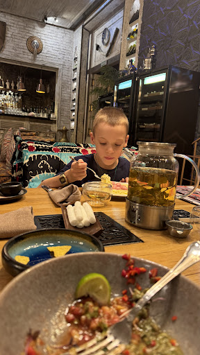 Read moreТри звёзды, как мне кажется, очень точно характеризуют это место - "Нормально" и ничего больше. Дизайн внутри хороший, разные зоны, большой детский угол с девочкой аниматором, спасибо ей большое, что занимала наших мелких :) персонал приятный. Кухня....ну мясо нам не понравилось, баранину пересолили, суп тоже средне, многовато уксуса :( салат с утиной грудкой, который стоит между прочим 740 руб, тоже был через чур уксусный. В туалете настолько темно, что там можно спать :) смысл не понятен. Мороженное...