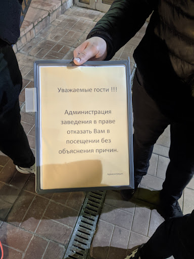 Объясняю подробнее, чтобы вы понимали, к чему готовиться: если охране не понравится ваша кофта, то она может вас не пустить (как это было со мной), потому что так хочет. Напомню, что речь идёт о кафе, а не о ночном клубе или дорогущем ресторане (хотя подобного отношения там точно не будет). Например, меня оттолкнули от входа сказав, что не пустят, поскольку "кофта спортивная", на вопрос, а что не так с девушкой, ответили табличкой на фото ("имеем право отказать без объяснения причин"). Нет, не имеете, поскольку это нарушает п. 3 ст. 426 гражданского кодекса и п. 1 ст. 16 закона о защите прав потребителей: заведения не вправе оказывать предпочтение в заключении публичного договора какому-то посетителю. Правила, которые предусматривают ущемление прав потребителя, признаются недействительными. Поэтому правило «Администрация может отказать в посещении без объяснения причин» незаконно.
