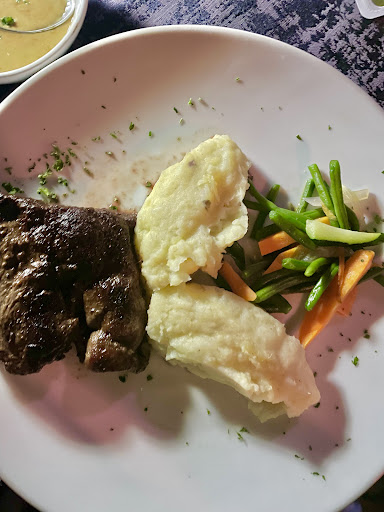 Entrees include steaks, chicken, and pork loin. Chateaubriand, vegetarian options, and more.