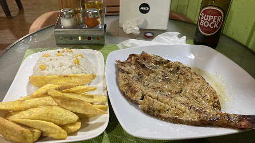 Read moreEspaço típico e com bom ambiente. Sempre música de fundo para alegrar! Comi um peixe vermelho (dose pequena que chegou perfeitamente) com um molho ligeiramente picante muito saboroso. Para acompanhar a banana frita e arroz de milho feito na perfeição. Só deixei mesmo as espinhas. Para refrescar só deu para beber uma Super Bock, porque já tinha esgotado a cerveja da marca deles. Achei o preço um pouco acima do que estava à espera, tudo 8euros (sei que não é muito!), mas estava tudo tão bom e a simpatia do rapaz que atendeu, valeu bem o preço....