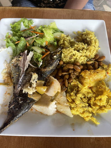 We had a very enjoyable evening here. Two of us had tuna, another had lambi (conch), and the fourth had octopus. We had a variety of vegetables, including fried plantain, green bananas and salad. All of our meals were very well prepared and flavourful. The lambi and octopus were served in creole sauce, which was delicious. Service was friendly and efficient, and we did not havecto wait long for our food to be served. We had eggnog icecream for dessert. We recommend...