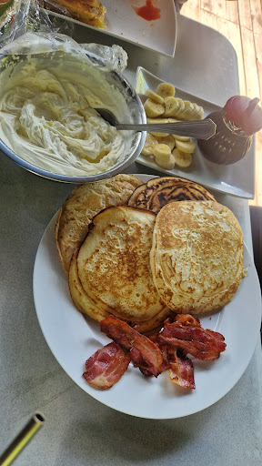 The breakfast food we ordered was standard (pancakes, american breakfast) but the chicken panini lacked flavor, I could barely finish it, though the portion was generous. Maybe some sauce or more cheese? Would go back for the relaxing set up. Bring bug spray and stay for the waterfall sounds...