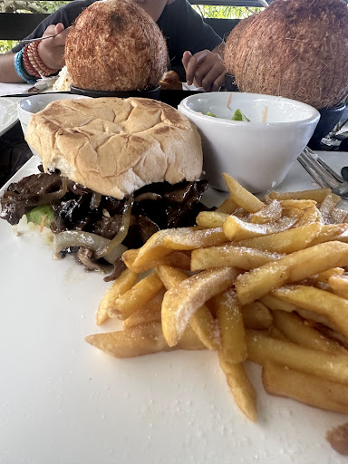 We order bruschetta and Thai spring rolls to share (after being told the oka, poke and sashimi were not available), which were both tasty - 7/10. The coconut cocktails we ordered were a little small, but good - 7/10.