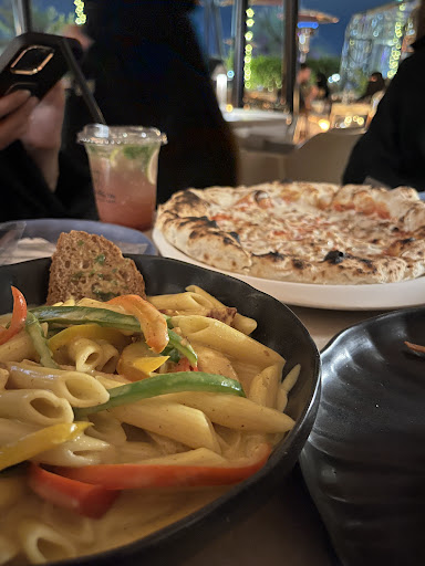 Good price and amazing atmosphere and excellent service and the food is tasty and the best thing on the menu is the pasta because there is a good amount of the the sauce and the noodles is great and the price is reasonable and the place has a cafe too and good prices and is good for 2-8 people and we payed 250or less for 8 people and I think it’s a strategy because it has a famous cafe and a place for your kids to play inside of...