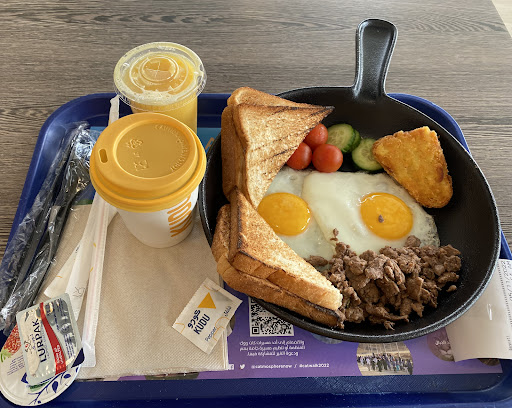 Great place for breakfast, nice location, bright open view in the morning. Staff nice and polite. I have breakfast there every few months, and last Saturday went there. Met Naif, an excellent example of customer focused staff, courteous, polite, calm. He ensured my breakfast was the way l wanted it, and while handing over highlighted that he ensured it’s as requested, wishing me to enjoy, hoped it’s alright. Thank you Naif Another thing l noticed while enjoying my breakfast, the staff cleaning the place, how particular he was wiping and cleaning even the wooden decorative edges on the wall, small places. I asked him his name Dullal. Well done. As for breakfast great value for money, nice and tasty. One area needs attention though are the benches, they shake and connected to the person sitting behind, so if they get up or sit down you go up or down They need to be...