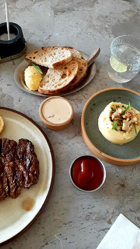 The complimentary bread that was served before the meal sadly I haven't tasted it since it was removed by the waiter. When he asked me if everything is okay then I thought he was just asking about the food or serving then he suddenly removed everything except the fries. I was thinking maybe it was just miscommunication but disappointed that he didn't ask if I am finished with the food.