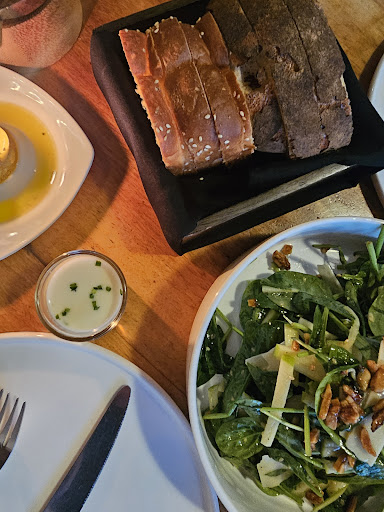 The Garlic Roasted Baby Potatoes were burnt. We didn't notice it at first as the dim ambiance was a pretty bit too dark, but once we tasted the bitter flavor, flipping the rest revealed charred, blackened sides. We didn't bother to send it back. The standout dish of the evening was the spinach and apple salad – a delightful combination of ingredients that offered a variety of textures.