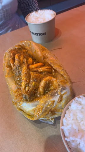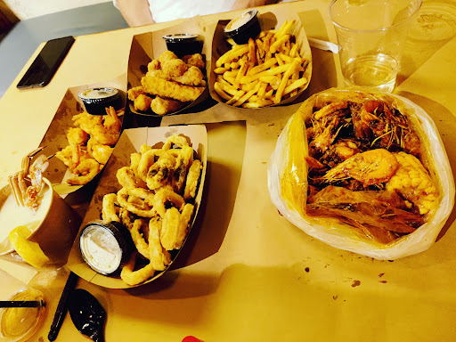 I enjoyed my time at Shrimp Nation. I ordered spicy shrimp with shrimp nation sauce and 2 servings of rice and a can of diet pepsi. It totaled 98 riyals, which i found very expensive as someone who doesn't usually spend much on food of this category. However, I must say I was surprised with the quality of the food. The shrimp was perfectly cooked and very easy to peel the skin off (i usually DESPISE peeling the skin off the shrimp). The shrimp flesh was juicy and flavorful, which was further exacerbated by the rich sauce that it was submerged in. The rice was average I must say, but it's not what I came here for anyways so I didn't really expect more from them. The combination of the shrimp, sauce, and rice was delicious and is perfect to satisfy the occasional craving for savory food. The serving size is way more than enough to fill up 1 heavy eater or 2 light eaters. The food was served by dumping it on the table and then you dig in with your hands (they provide you with plastic gloves). I like this concept, but I didn't like that the table was only covered with a paper sheet, so it was SOAKED with juices that were very close to spilling over the edge of table onto my clothes. The service was RAPID. We had a decently large order, and it was served no more than 5 minutes after we ordered. The atmosphere of the restaurant is pretty average. It's not something to repel me nor attract me there; you go purely for the food! Overall I would visit again despite the steep cost...