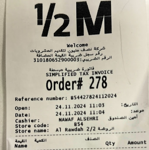 Read moreI’m a huge 1/2M fan and I love their drinks. Their Ice Signature is a must try! However their Pistachio Latte is very sweet and I couldn’t drink it after 2 sips! Parking is available behind the building. Commenting on their drive thru, it’s very slow! They should adopt a proper drive thru system to speed the line.