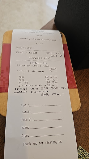 Read moreVery nice ambience Wide variety of food which is ever changing Arabic food, continental Indian all was amazing Salad bar is one of the best among all Riyadh eateries Food was delicately made, ingredients was showing that it is of high quality and fresh Meat in any form was rich in taste and tender juicy Amazing choices for desserts, Arabic and continental both Basic choices of drinks , like fresh juices and soft drinks Best part is that it has huge terrace outside, where you can enjoy hot drinks and a ambience of cafe Staff is very cooperative and gentle Ample basement parking of main hotel Using Entertainer...
