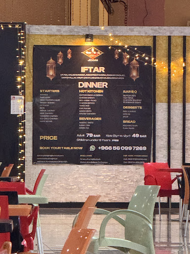 Firstly, the price of 59 SAR per person seemed reasonable, but the variety and quality of the food were disappointing. Compared to their Iftar dinner options, the items available during the Suhoor slot were significantly fewer. Notably, there was no chicken or mutton kebab on the menu, which seemed odd given that the restaurant's name suggests a focus on barbecue items. The biryani was particularly underwhelming and honestly felt like a waste of money – it was bland and lacked flavor.