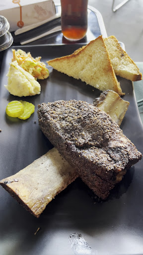 ○The restaurant had wonderful ambience, and customer service. Me and my mother got food to go, and sat in the restaurant to wait for my friend to arrive at the Cafe next door, so we came back home reheated the food. ○ For around 87 riyals we got two briskets, a small glass jar of honey, three slices of a pickle, sauce, and buttered toast, all in a box. This in my opinion is worth the money. Although I think I could've gotten a little more in the proportion side of things, considering the type of produce served, the price makes sense. BUT ofcourse if you are looking to be mindful of your money you can't be coming here everyday. ○ The amount of food is enough for one person, or two people, If you have a moderatly smaller appetite. (we split it between three people because we just wanted to taste it) ○Altough I think the brisket could have been seasoned slightly more (we drizzled a bit of lemon on ours) , it was cooked perfectly with a tasty proportion of protein to fat. It was the best meat we ate from a western style food place hahaha (As you can tell from my previous reviews I'm not a big fan of western food). ○ I was hesitant of eating the honey we were given but after I mixed it with the sauce, I completely understood why.