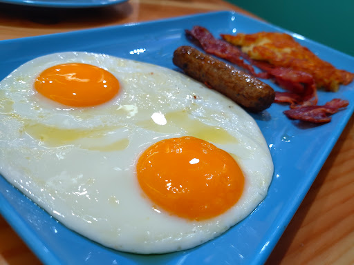 We have ordered Pancake Combo 🥞, With Eggs 🍳 and Bacon Stripe 🥓, French Toast Combo, with eggs🥚and sausage 🌭 and they all comes with golden hash brown with 2 coffee latte ☕ also, the ingredients were 7/10 fresh, the look was nice with the Pancake 🥞 softness 7/10, the taste was delicious due to the Carbs effect 7/10, and the quality of the food for the Price 💰 6/10 so far.